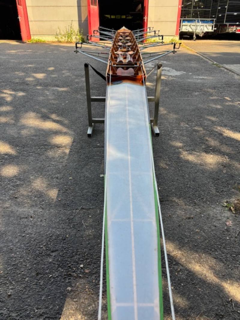 Zu verkaufen: Buggesteuerter Vierer mit sowohl Riemen- als auch Skull-Riggern. Marke: BBG. Das Boot ist für schwere Ruderer geeignet. Baujahr 2003, befindet sich jedoch in sehr gutem Zustand. Der einzige Grund für den Verkauf ist, dass in unserem Verein niemand mehr vorhanden ist, der liegend im Bug steuern möchte. Preisvorstellung: 5000 Euro. Das Boot liegt in Roermond, Niederlande.